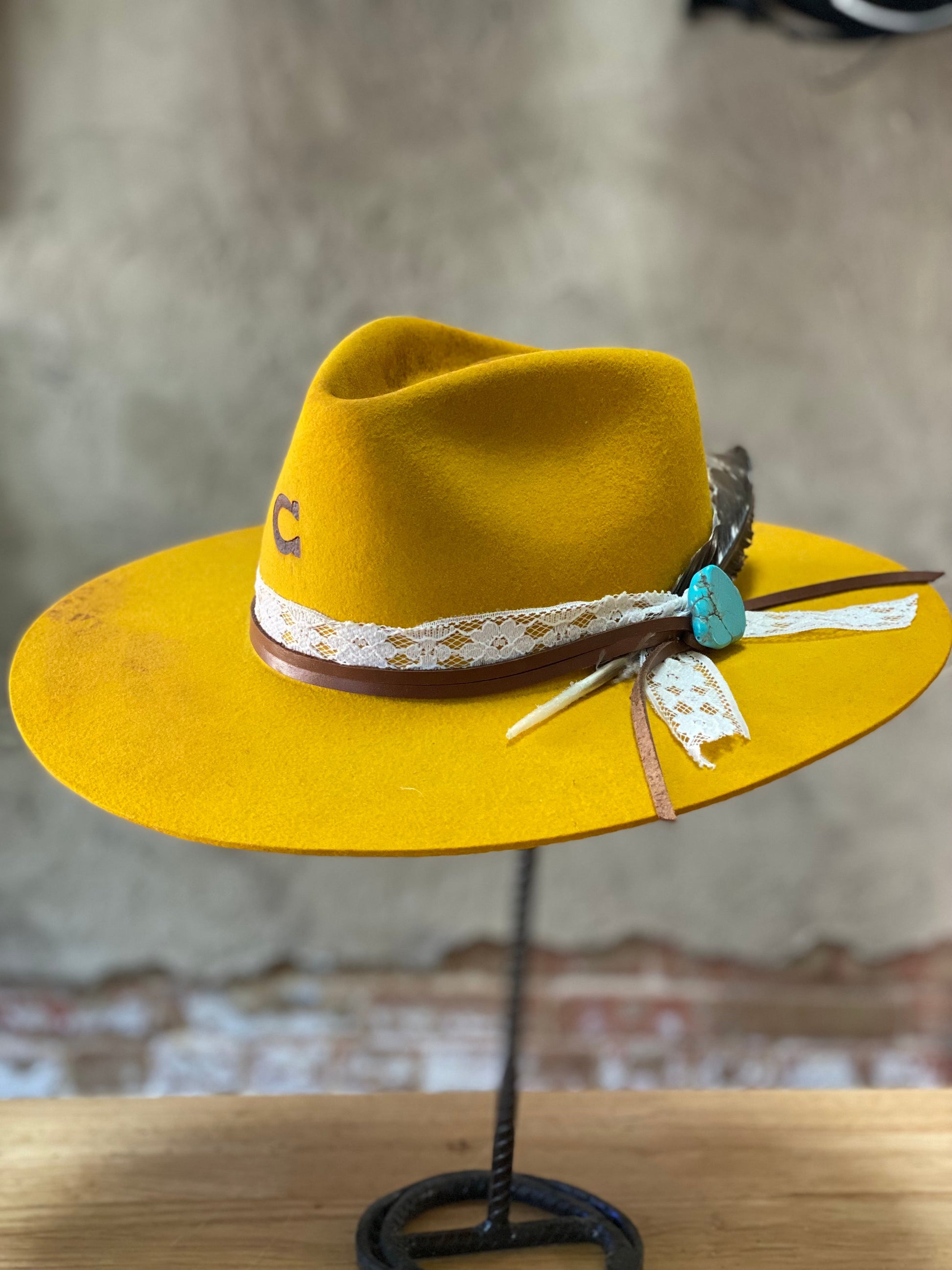 *** If your hat gets wet, shake off the excess water, and turn down the “self-conforming” leather sweatband. This will allow the hat to dry naturally. While the hat is wet, don’t let the brim touch the surface and don’t place it near heat. Heat can reactivate the felting process and cause shrinkage.