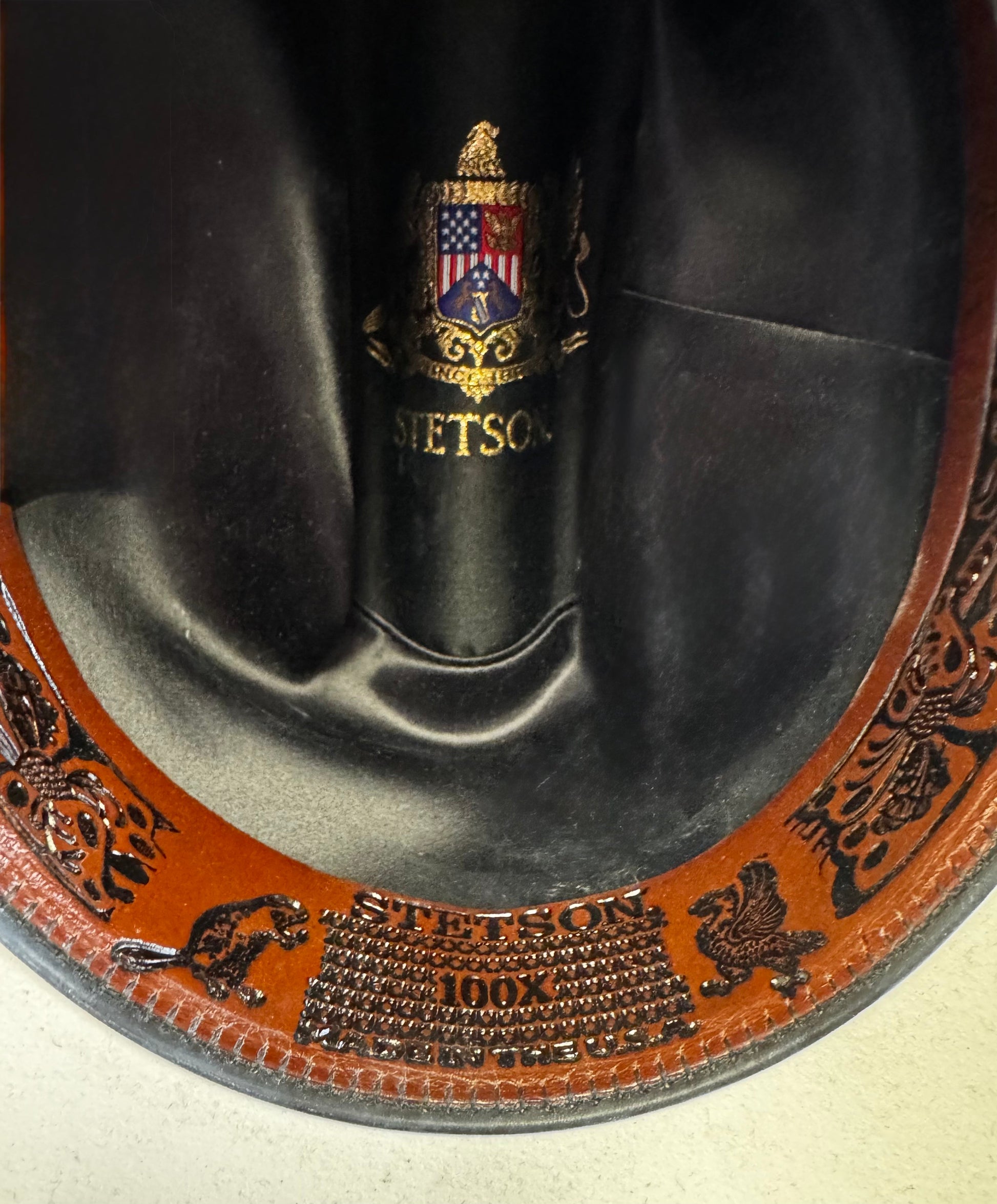One of the finest hats made by Stetson, the El Presidente is made from premium 100X fur felt. A shining example of the legendary craftsmanship Stetson is known for, this incredibly high-quality piece features classic cattleman hat styling, with a 4.25” wide brim. Made in the U.S.A., the El Presidente has a soft, satin-lined crown and comfortable 2” leather sweatband — on the outside, a self-felt hatband dyed the same distinctive hue as the body of the hat is set apart by a three-piece buckle set made of solid 10-karat gold. Part of Stetson’s Premier Collection, this hat exudes a quiet confidence and rugged fortitude that sets it apart from the crowd. Comes with a heavy-duty hat case.