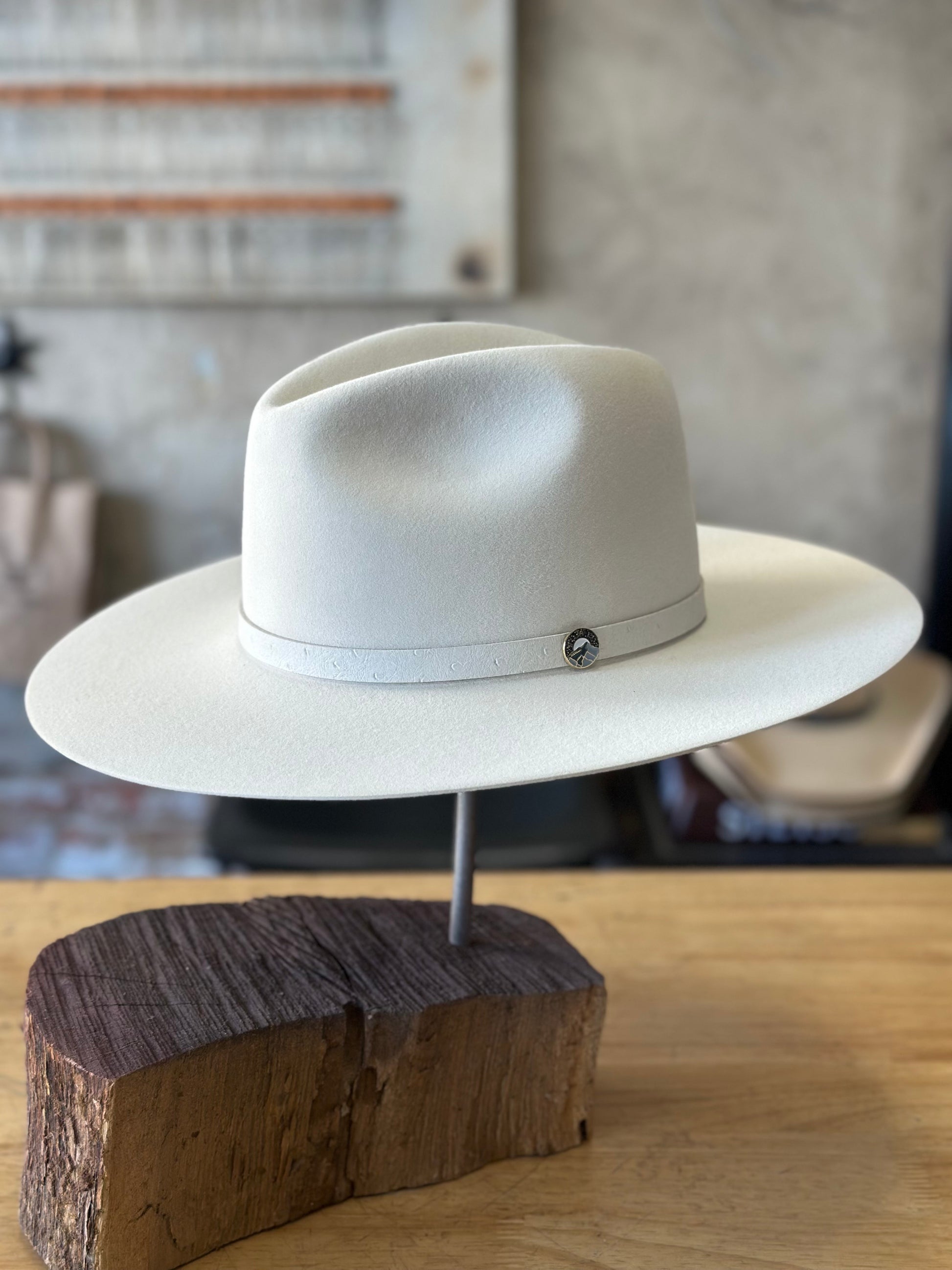 To keep perspiration from penetrating the fur felt, occasionally turn down the leather sweatband so it can dry out. -Should your hat, (if it is light colored) become spotted with water or grease, you can clean it with a little baby talc or corn starch - not liquid cleanser, please!