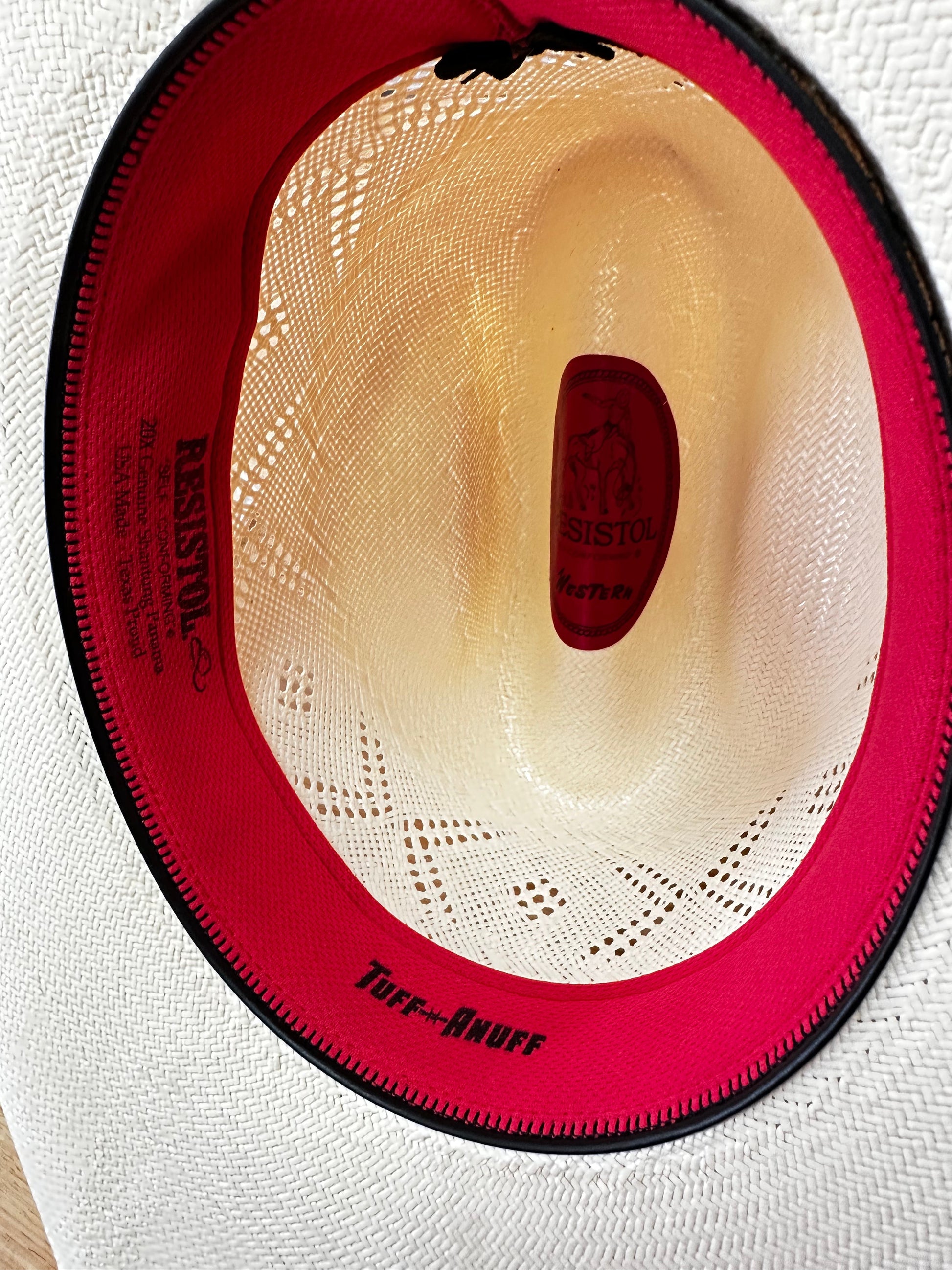 To keep perspiration from penetrating the fur felt, occasionally turn down the leather sweatband so it can dry out. -Should your hat, (if it is light colored) become spotted with water or grease, you can clean it with a little baby talc or corn starch - not liquid cleanser, please!