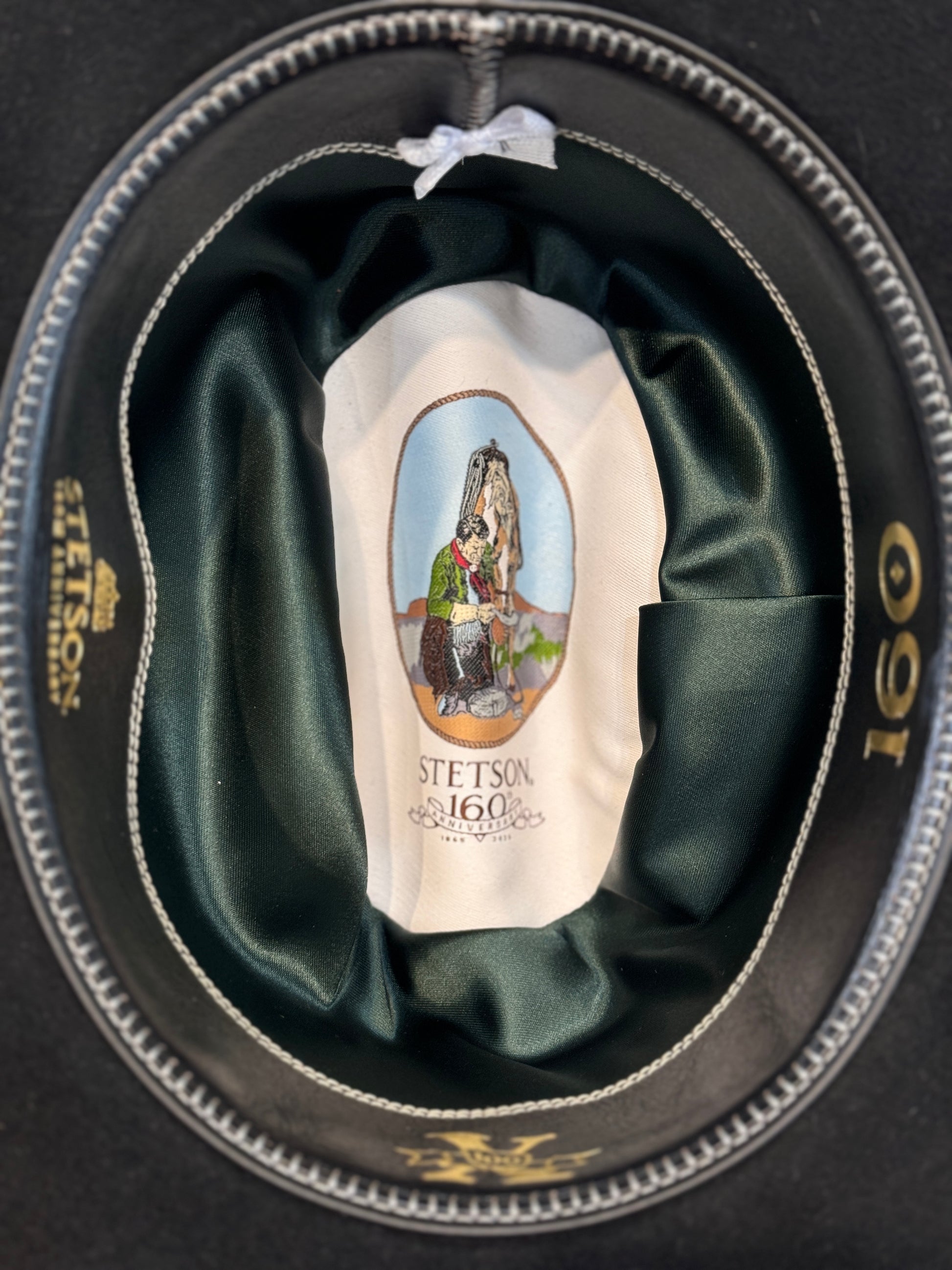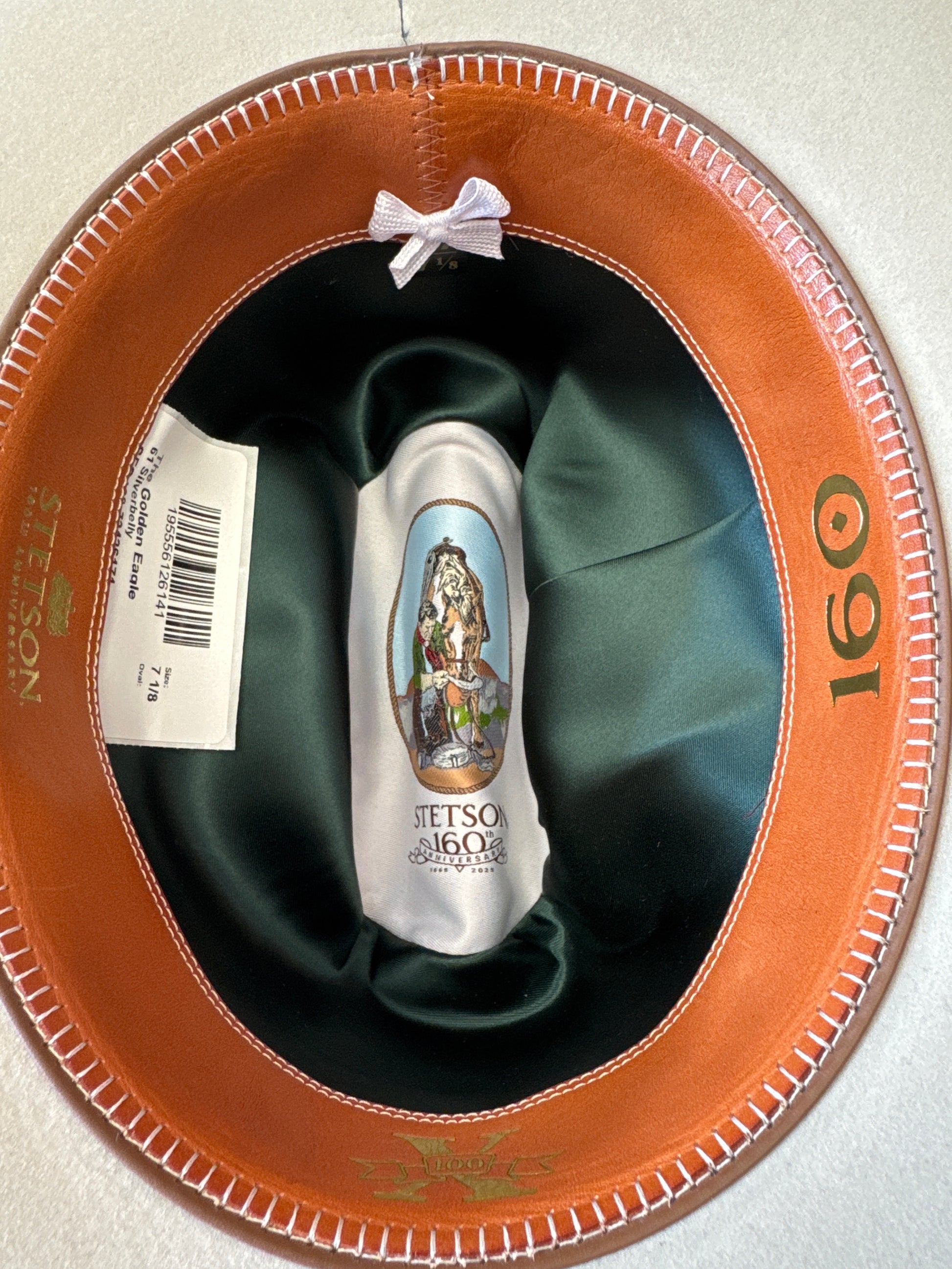The 160th Anniversary Collection celebrates John B. Stetson’s founding of his namesake company in 1865 and embodies his original commitment to quality and craftsmanship. Like each limited edition hat in the collection, the Golden Eagle is marked by a Five Dollar gold coin emblem—a nod to the price paid for the first Stetson ever sold, by John B. Stetson to a passing bullwhacker in the Colorado Rockies in the early 1860s. For the Golden Eagle, this emblem includes genuine gold plating and the hat includes additional premium upgrades including a “160” deluxe emerald satin liner and custom roan leather sweatband. Each Golden Eagle includes a numbered 100X certificate of authenticity, hardshell travel case and premier hat box.
