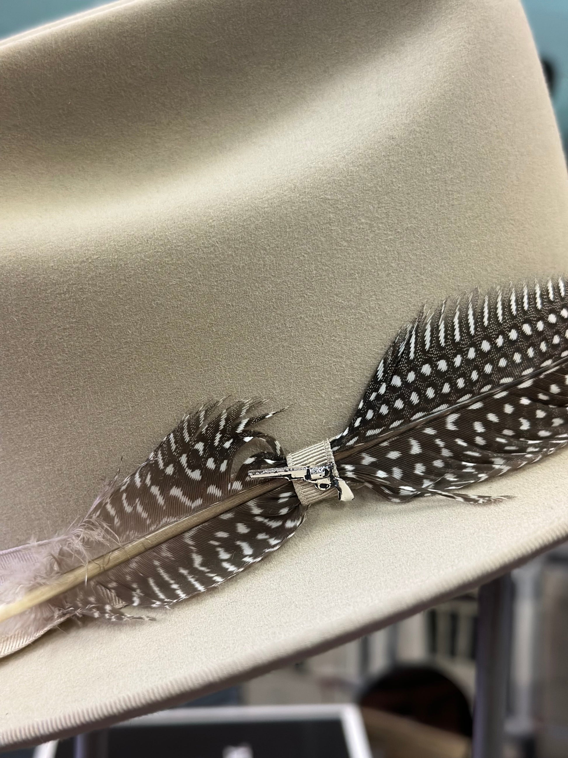 To keep perspiration from penetrating the fur felt, occasionally turn down the leather sweatband so it can dry out. -Should your hat, (if it is light colored) become spotted with water or grease, you can clean it with a little baby talc or corn starch - not liquid cleanser, please!