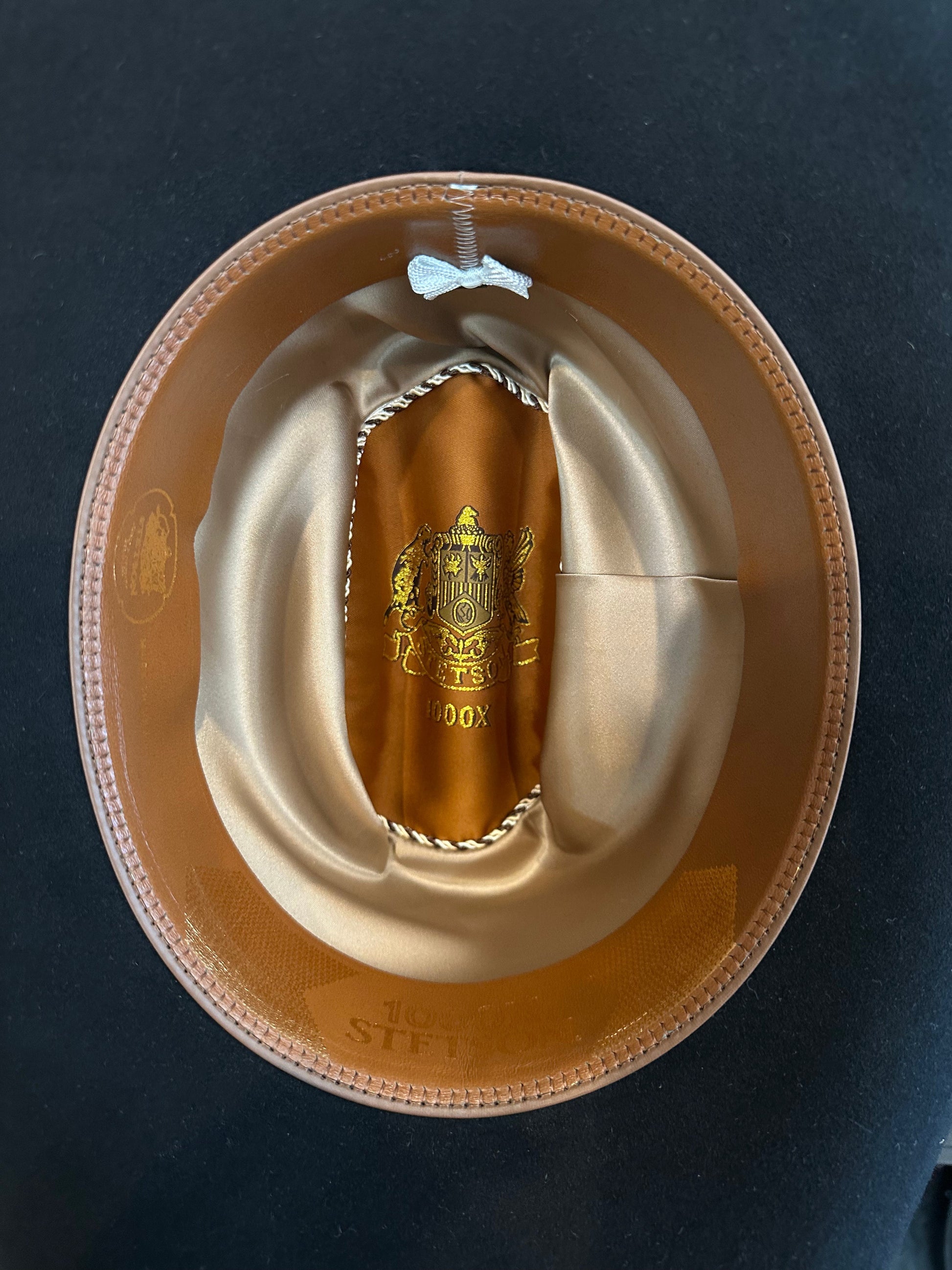 To keep perspiration from penetrating the fur felt, occasionally turn down the leather sweatband so it can dry out. -Should your hat, (if it is light colored) become spotted with water or grease, you can clean it with a little baby talc or corn starch - not liquid cleanser, please!