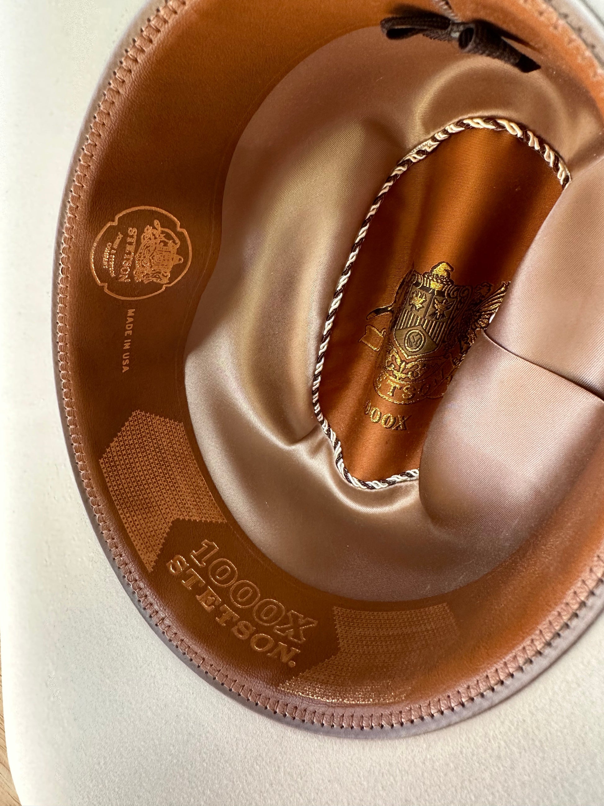 *** If your hat gets wet, shake off the excess water, and turn down the “self-conforming” leather sweatband. This will allow the hat to dry naturally. While the hat is wet, don’t let the brim touch the surface and don’t place it near heat. Heat can reactivate the felting process and cause shrinkage.