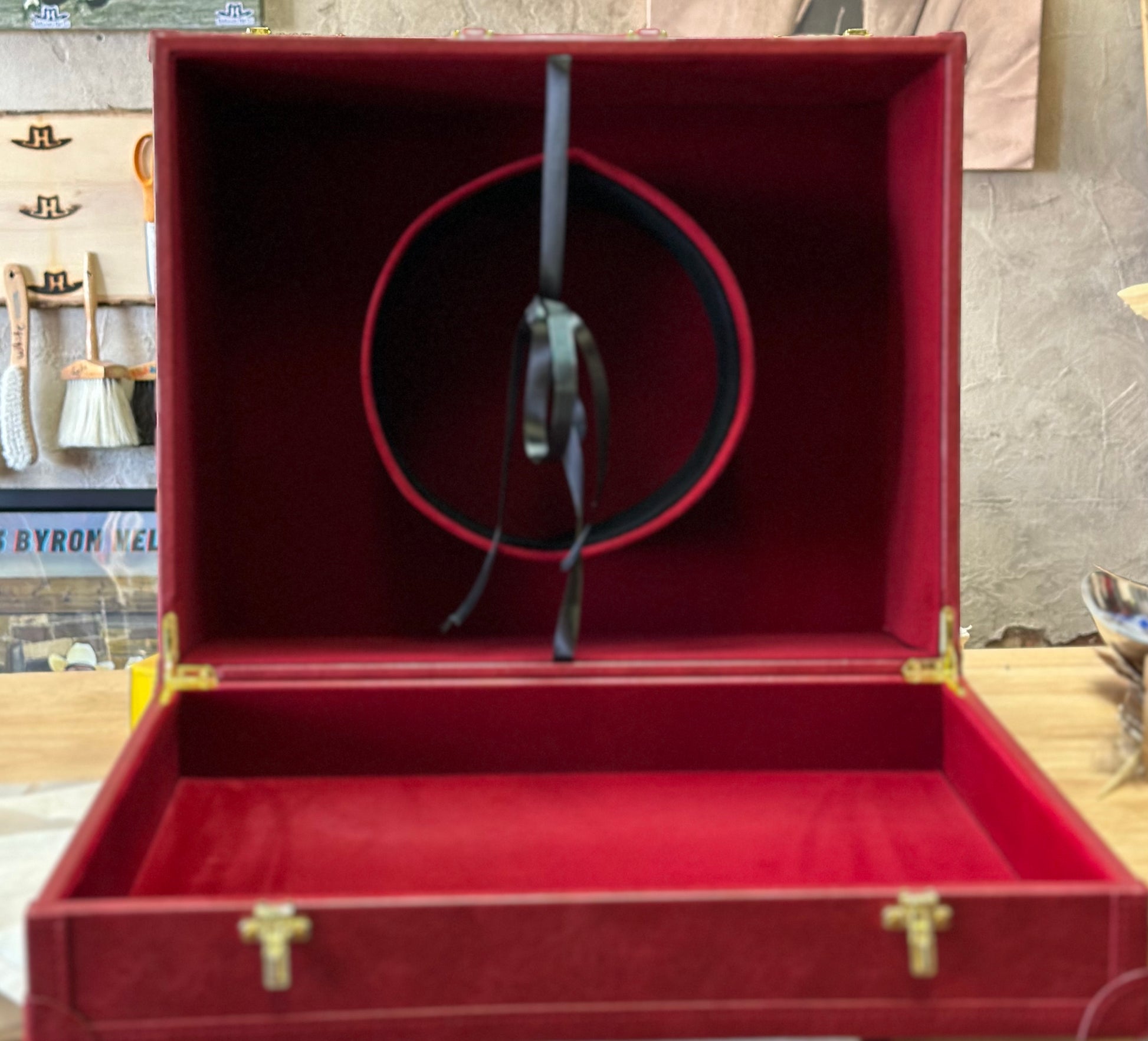 Store your felt hat upside down on its crown, on a clean surface or in a hat box to keep the brim from flattening out.