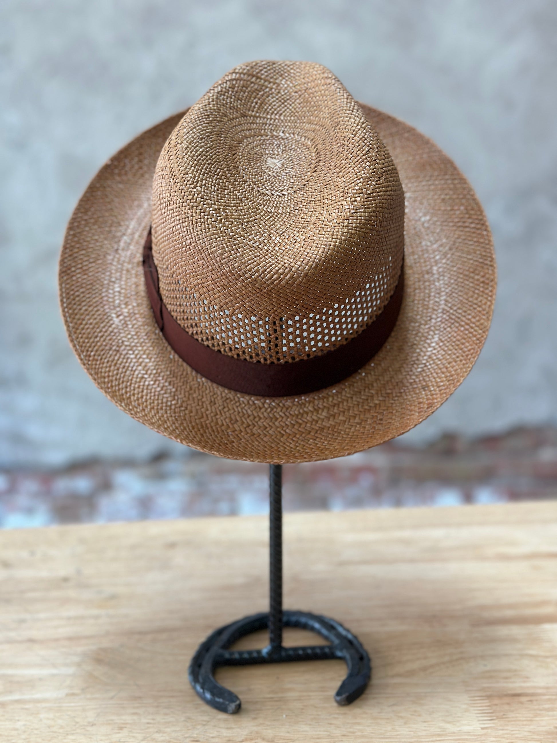 Store your straw hat upside down on its crown, on a clean surface or in a hat box to keep the brim from flattening out